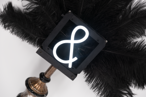The design of the Witchy Woo is inspired by the tribes culture of New Orleans and the “Mardi Gra Indians” tradition, as well as by Disney villains who often possess a scepter with magical powers. It is made out of an old antique lamp, black ostrich feathers and an LED shaped like an ampersand which is my symbol as an artist as it’s the first character of my artist name – &theNIGHT. This scepter’s design wishes to bring magic into technology and appear more mystical than technical, with all the sensors, wires and electronics hidden inside it.